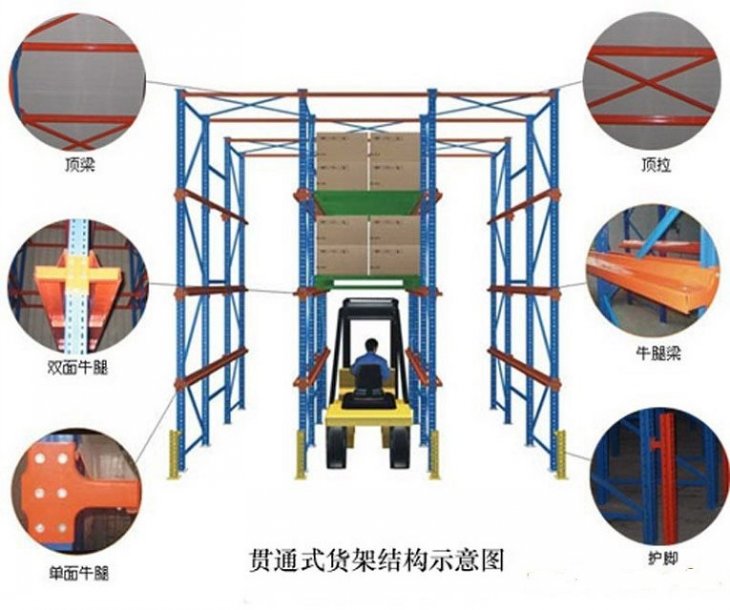 1、貨物存儲(chǔ)通道亦為叉車儲(chǔ)運(yùn)通道,是存儲(chǔ)密度較高的一種形式貨架。