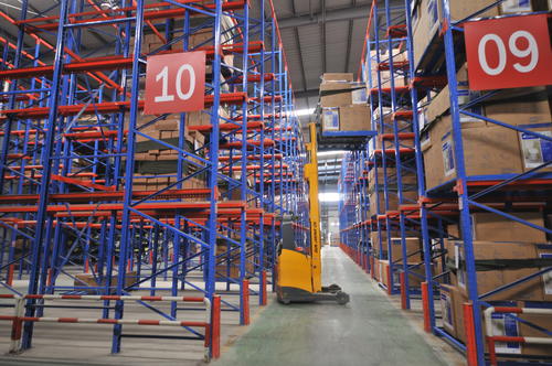 3、以普通叉車的提升高度,通廊貨架層數(shù)為三層貨物的常規(guī)方案計(jì)算,倉庫的有效存儲(chǔ)容量可增加100%以上,相比之下投資成本得到控制,效益顯著提升。從全局存儲(chǔ)成本計(jì)算,一般在三年內(nèi)所增加存儲(chǔ)容量效益即可抵銷投資成本。