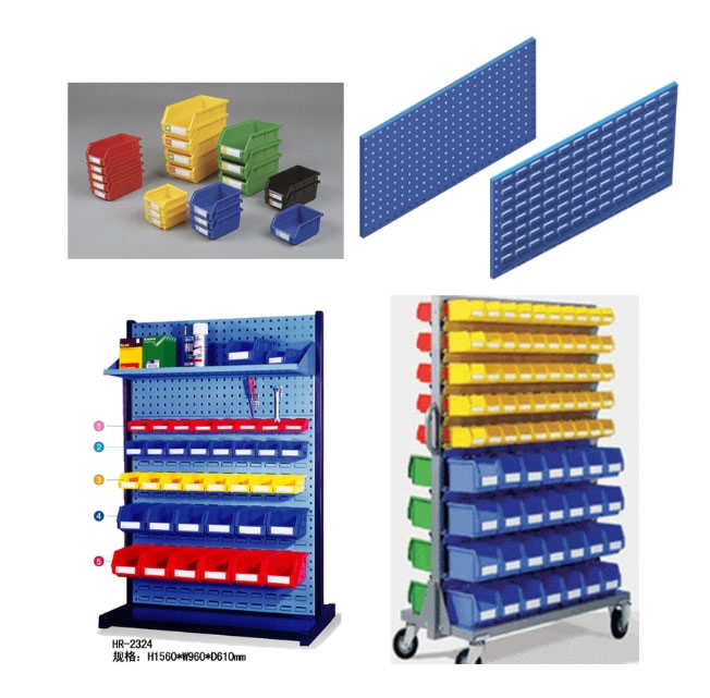 物料整理架物是以方孔掛板和百葉掛板為主要部件,結(jié)合背掛零件盒、掛鉤、棚板等多種配件使用。對您生產(chǎn)現(xiàn)場的小型少量多樣的工具、物料進(jìn)行分類存放、方便搬運(yùn)歸位、充分利用空間,整潔高效。